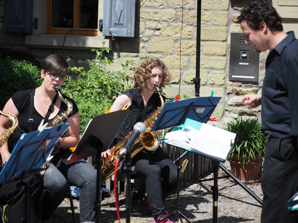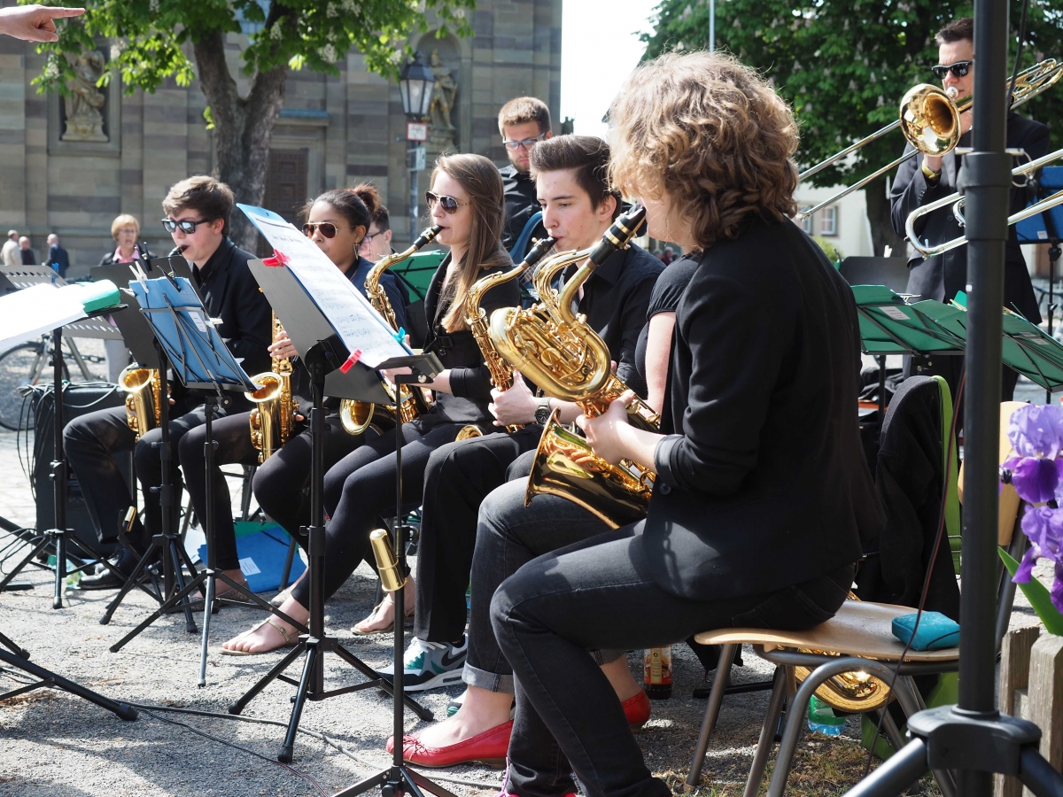 Bereits zum 9. Mal konnten Radfahrer, Skater und Wanderer am 17. Mai 2015 die 45 Kilometer lange Strecke um den Schweinfurter Mainbogen autofrei erleben. In Grafenrheinfeld wurden sie von unserer Brasshoppers Big Band erwartet.